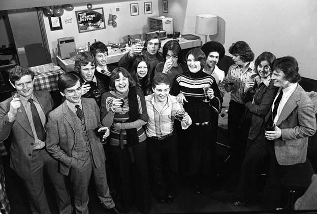 Nick Hitchon is the handsome young 21 year old on the far right. That picture was taken four decades ago, after the release of the third film in the “Up” series, which has followed the lives of those in the picture from age 7. “63 Up”, opened to thoughtful reviews, with many critics quoting Nick’s observation: “I’m still the same little kid, really. I think all of us are”, probably because it captures a universal dilemma. What we retain—the “essence of me” as we barrel into the future— is at the heart of defining identity as we age.